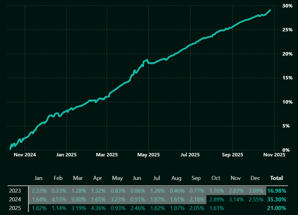 Backtest: Jan 2023 - Sep 2024 | Live performance since October 2024