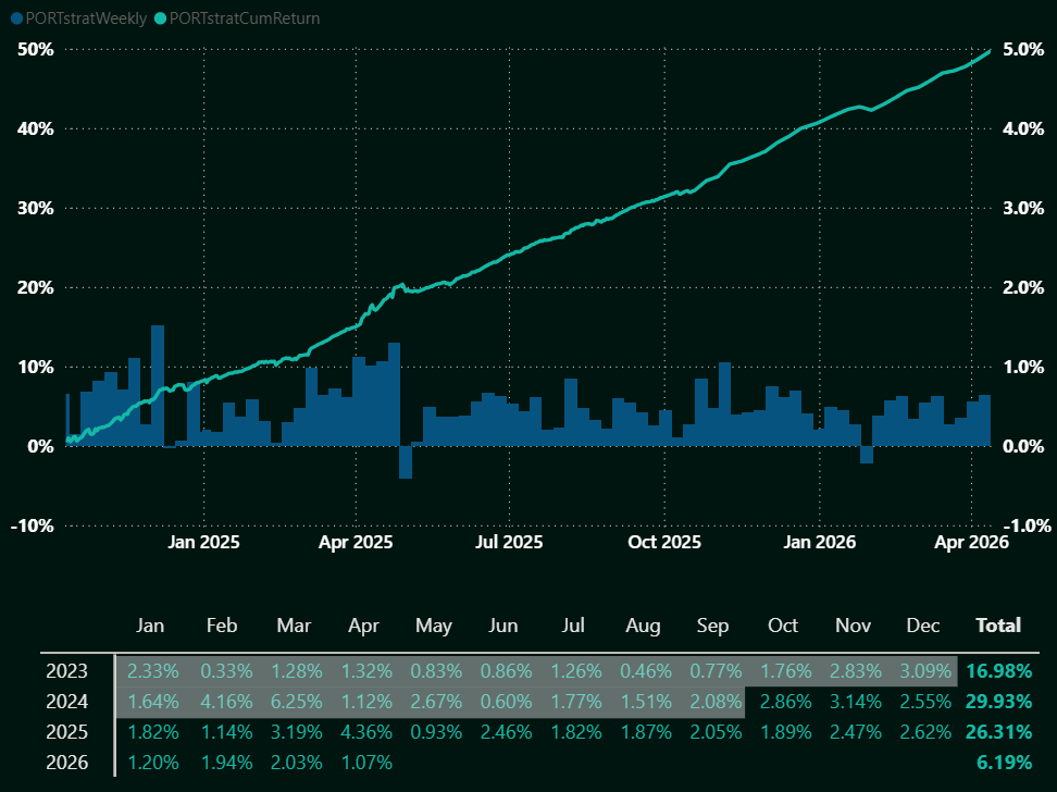 You will receive the latest update on the performance of the MNC Income trading strategy every Monday.